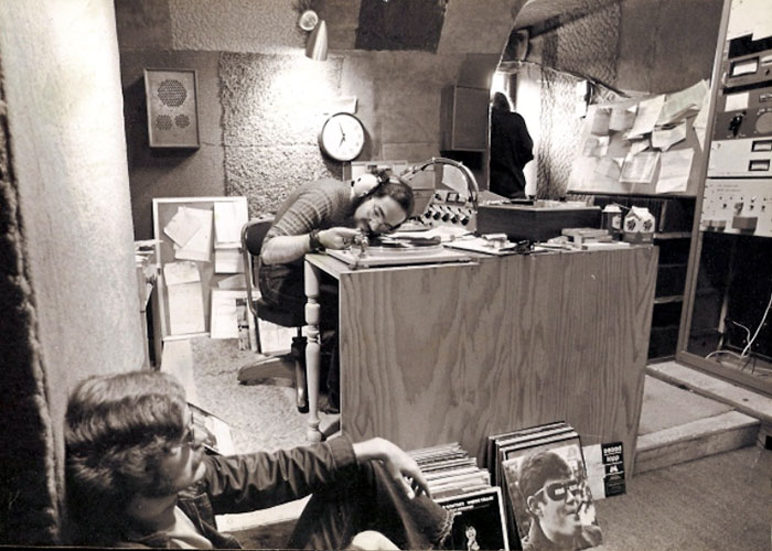 The main on-air studio was located on the third floor of the house at 713 Colonial Avenue in the Ghent area of Norfolk. The studio was small, the equipment was barely reliable and many of the staffers had their first ‘and best’ on-air experiences there. One door led to a fire escape and that Kello recalled being ‘like an Earth orbiter escape hatch’ giving a sense of sustained orbit above the earth.’ Many listeners and fans used the fire escape to visit the on-air staff, often bearing assorted gifts and new recordings to share. At times, a room on the first floor operated as an in-house studio where noted musicians and bands would play live on the air.